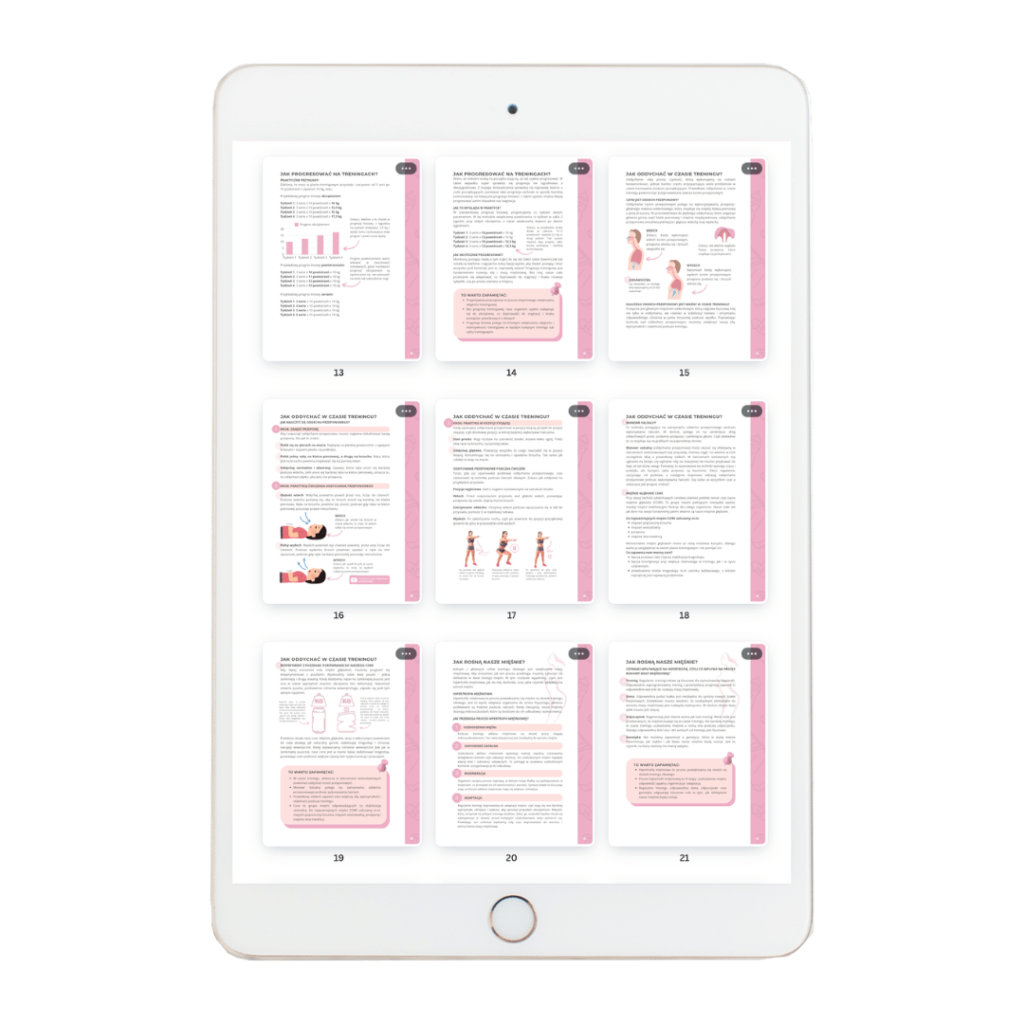 Każda podopieczna w moim teamie otrzymuje mojego autorskiego ebooka ,,Teoria treningu siłowego” w którym zgromadziłam zbiór merytorycznej wiedzy z zakresu treningu siłowego przekazany w prosty i przystępny sposób. Dowiesz się z niego dosłownie wszystkiego co jest Ci potrzebne.